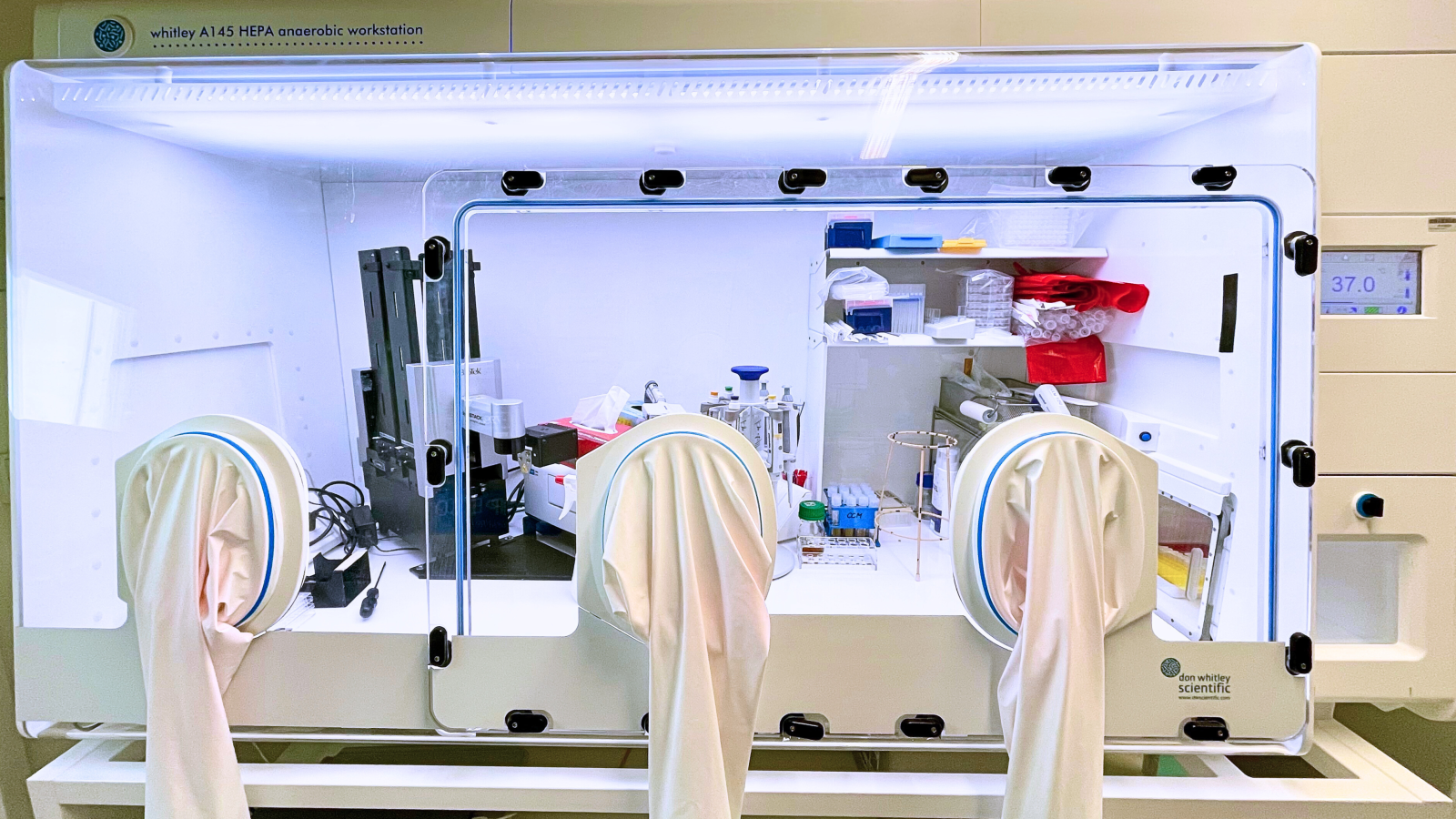 The Whitley A145 HEPA Workstation is a tall, wide, anaerobic workstation fitted with the unique internal HEPA filtration system. Like our other anaerobic chambers, it provides excellent conditions for the processing, incubation and examination of samples without exposure to atmospheric oxygen.